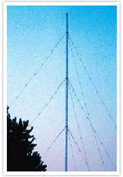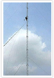 正三角形布置形式以及鋼絞線拉線固定方式,大大降低塔身自重 ;風(fēng)荷載系數(shù)小,基礎(chǔ)形式簡(jiǎn)單,占地少(一般0.25m×0.25m),對(duì)承重物破壞較小,樓面基礎(chǔ)施工便利 ,可設(shè)計(jì)多層平臺(tái),承載能力較高,可掛載多副天線和微波傳輸設(shè)備;在樓面上施工時(shí),由于樓面周圍維護(hù)結(jié)構(gòu)多,拉線固定方便,施工速度大大加快;在山坡上施工時(shí),可利用山坡優(yōu)勢(shì)進(jìn)行拉線固定,安裝便捷、施工速度快;構(gòu)件輕、占地少、對(duì)承載物的破壞小。